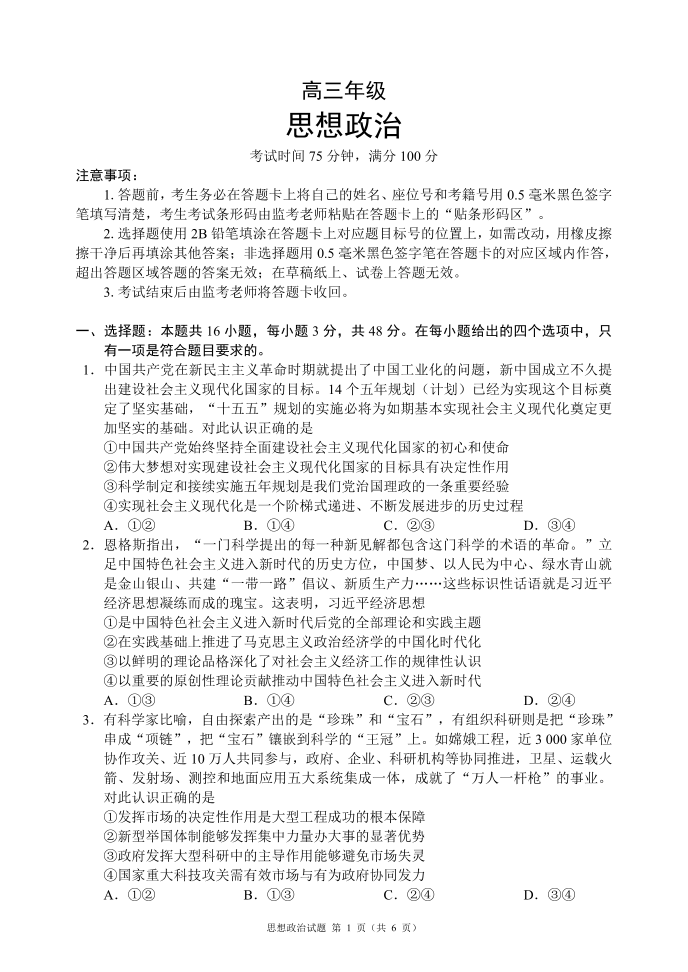 蓉城名校联盟2026届高三第二次联合诊断性考试 政治.pdf