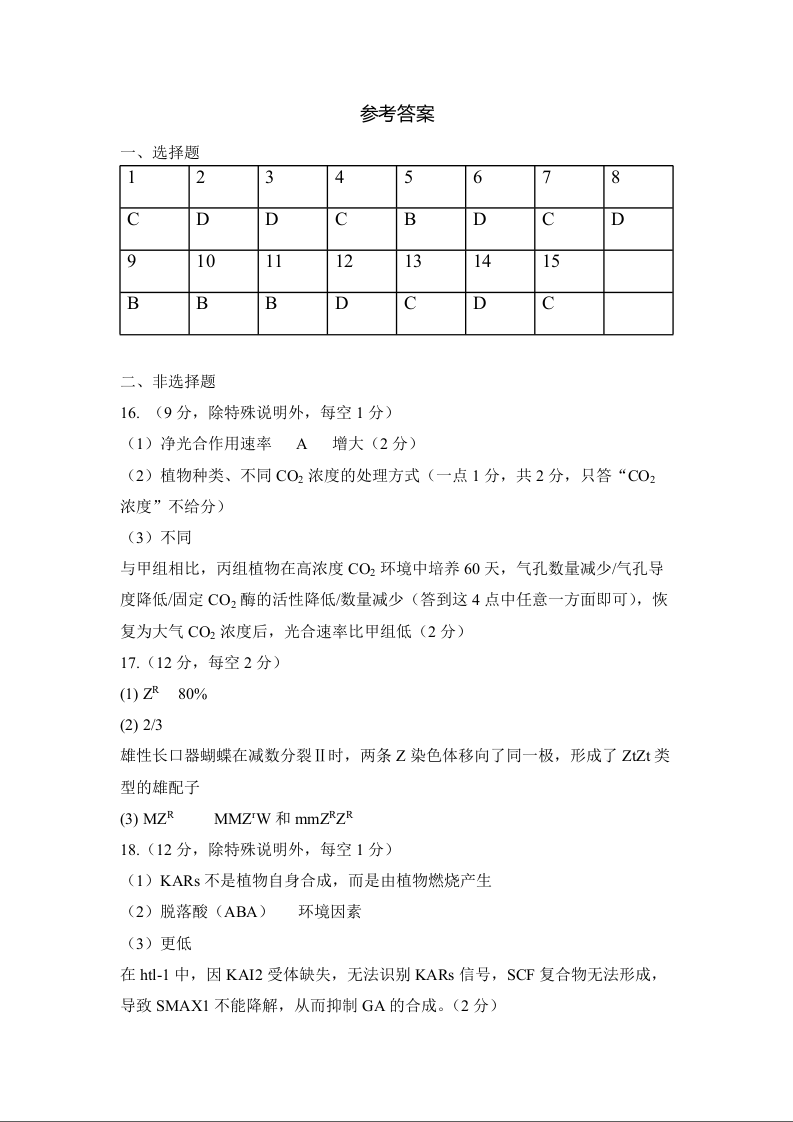 乐山市高中2023级第二次调查研究考试 生物答案.docx