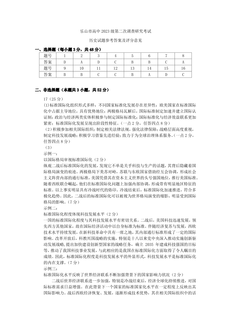 乐山市高中2023级第二次调查研究考试 历史答案.pdf