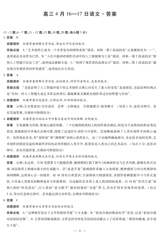 合肥市第六中学等学校2026届高三4月16—17日联考 语文答案.pdf