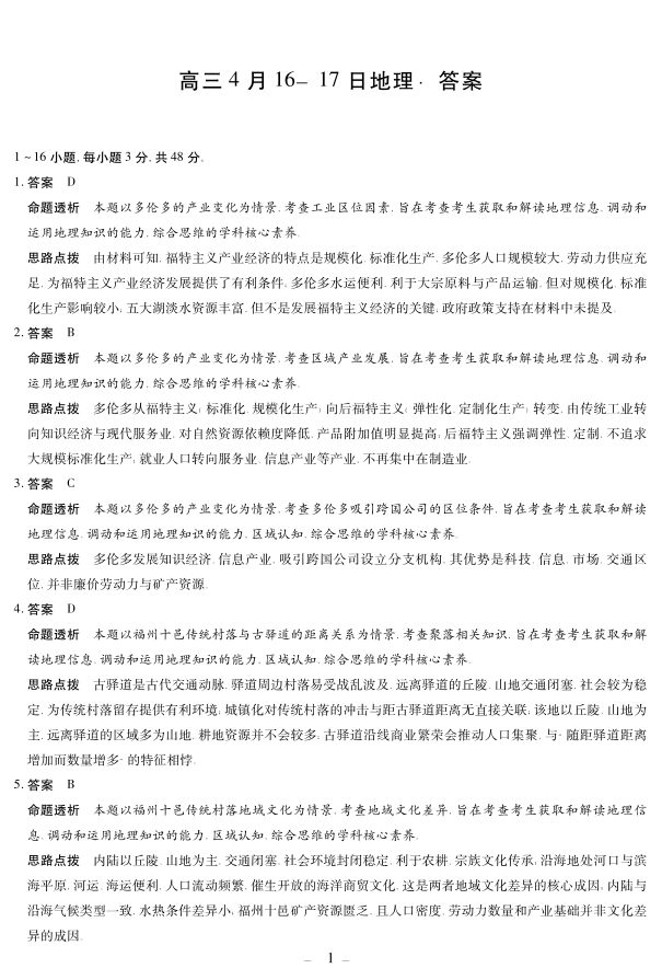 合肥市第六中学等学校2026届高三4月16—17日联考 地理答案.pdf