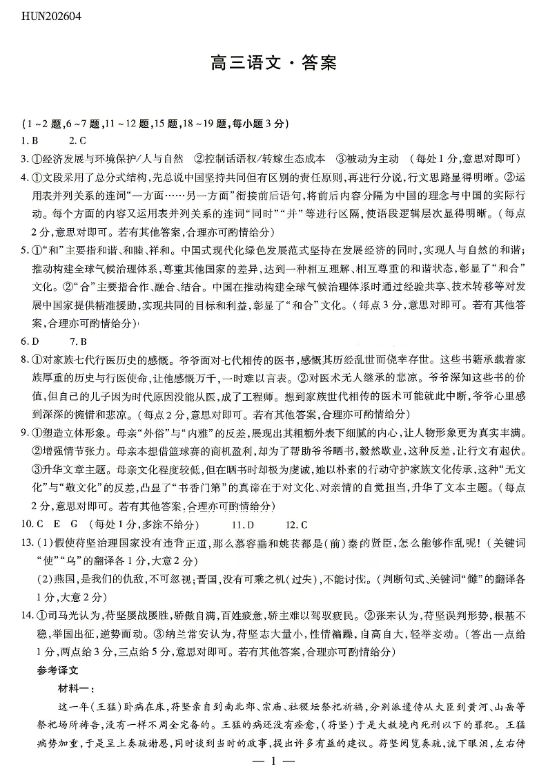 湖南省、广西壮族自治区天一大联考2026年高三年级4月联考 语文答案.pdf