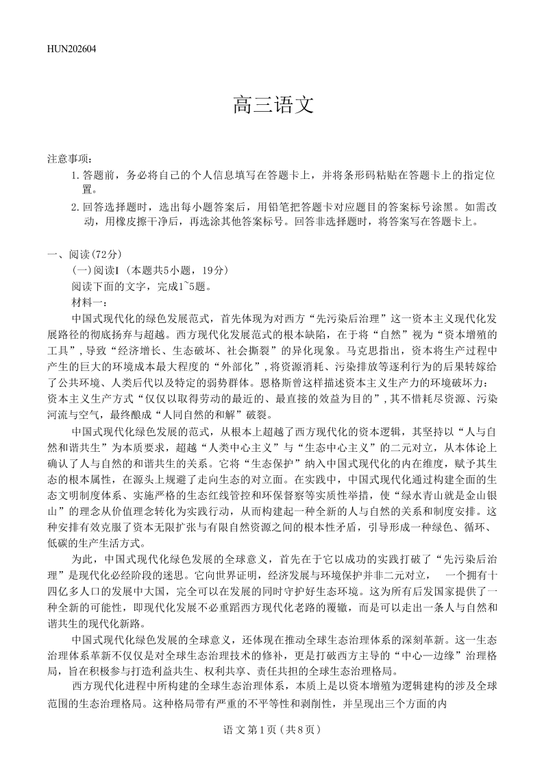 湖南省、广西壮族自治区天一大联考2026年高三年级4月联考 语文.pdf