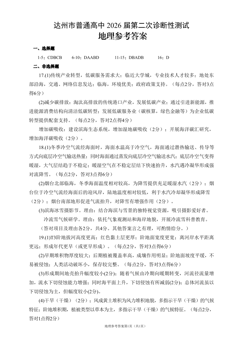 达州市普通高中2026届第二次诊断测试 地理答案.pdf