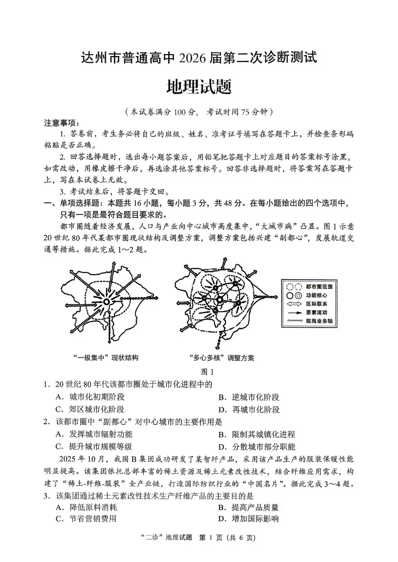 达州市普通高中2026届第二次诊断测试 地理.pdf