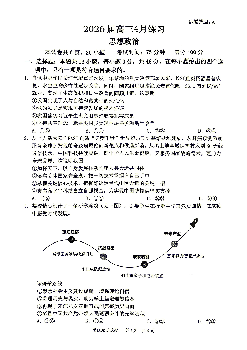 广东省惠州市、韶关市2026届高三4月练习 政治.pdf