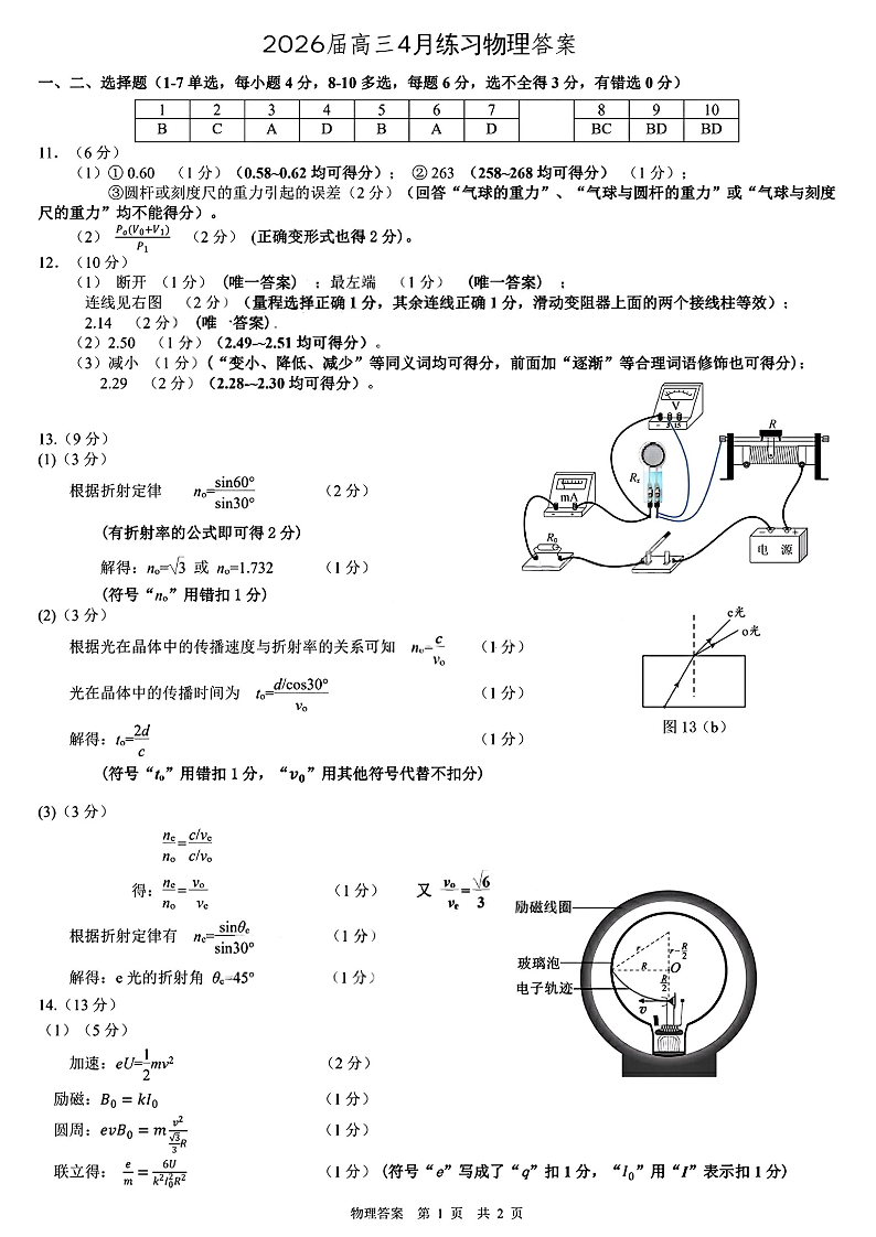 广东省惠州市、韶关市2026届高三4月练习 物理答案.pdf