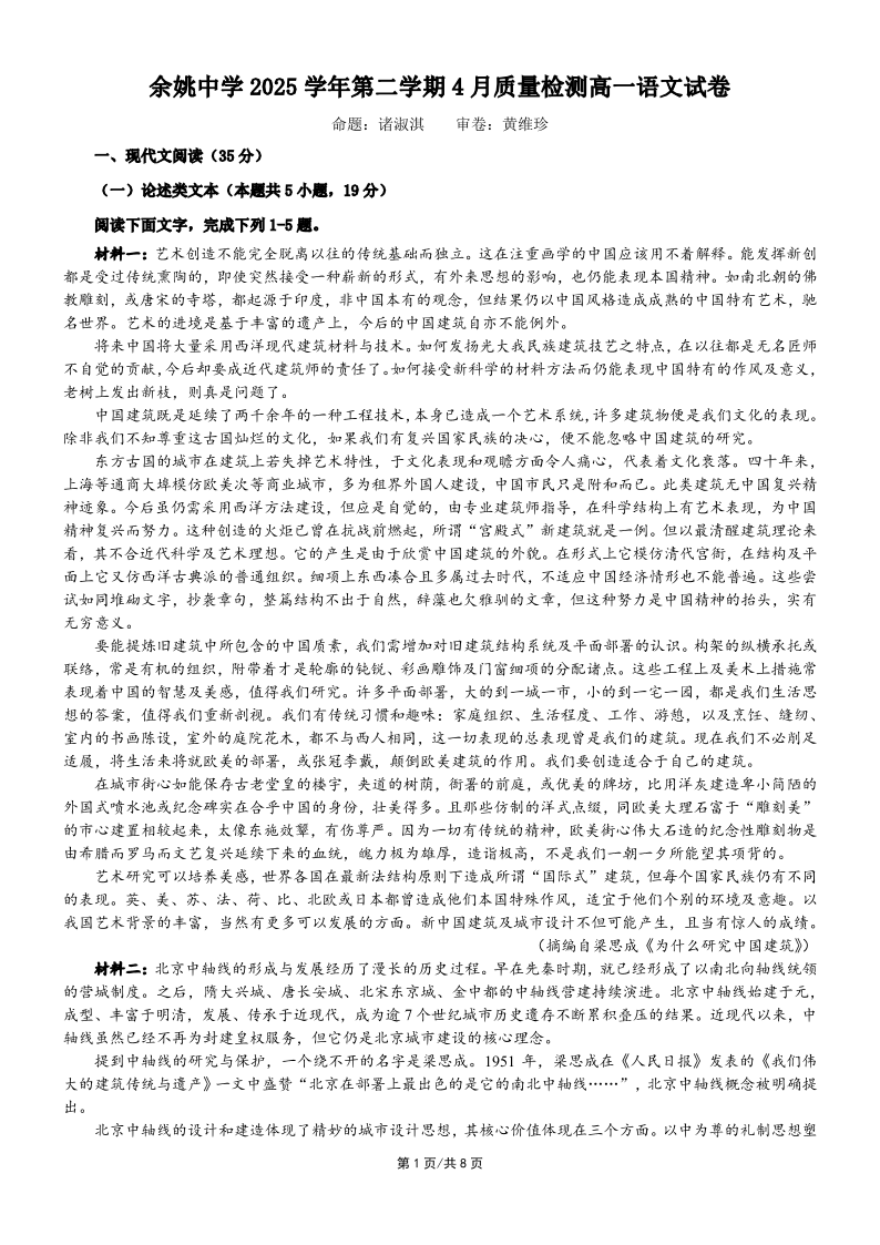浙江省余姚中学2025-2026学年高一下学期4月质量检测 语文.pdf