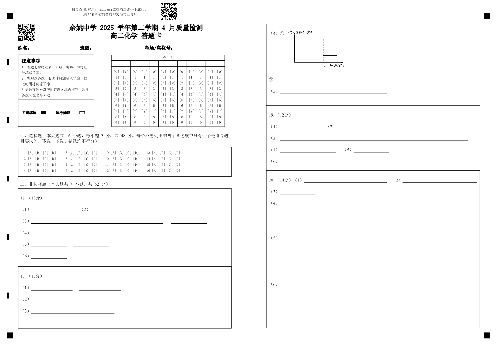 浙江省余姚中学2025-2026学年高二下学期4月质量检测 化学答题卡.pdf