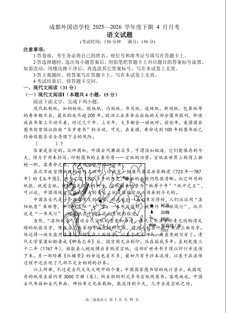 成都外国语学校2025-2026学年高二下学期4月月考 语文.docx