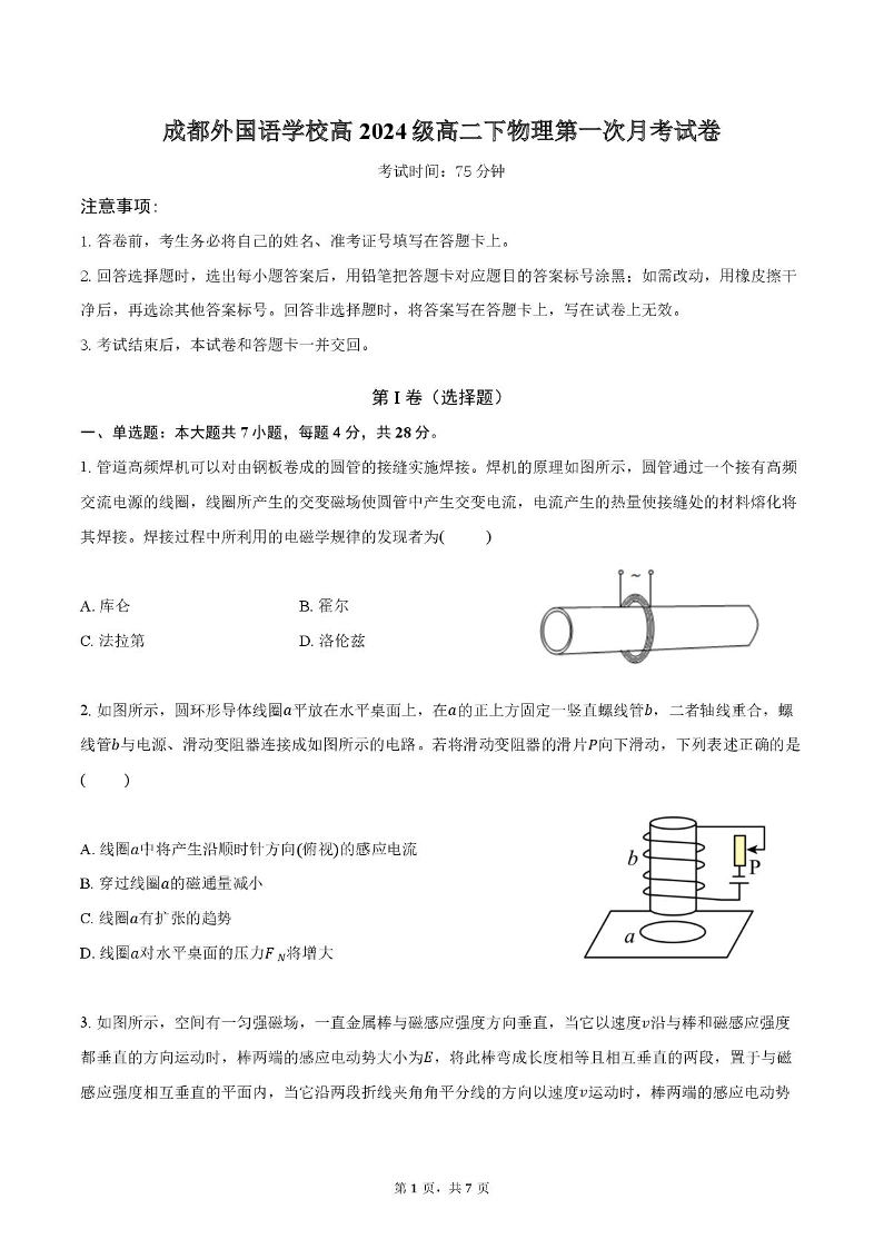 成都外国语学校2025-2026学年高二下学期4月月考 物理.pdf