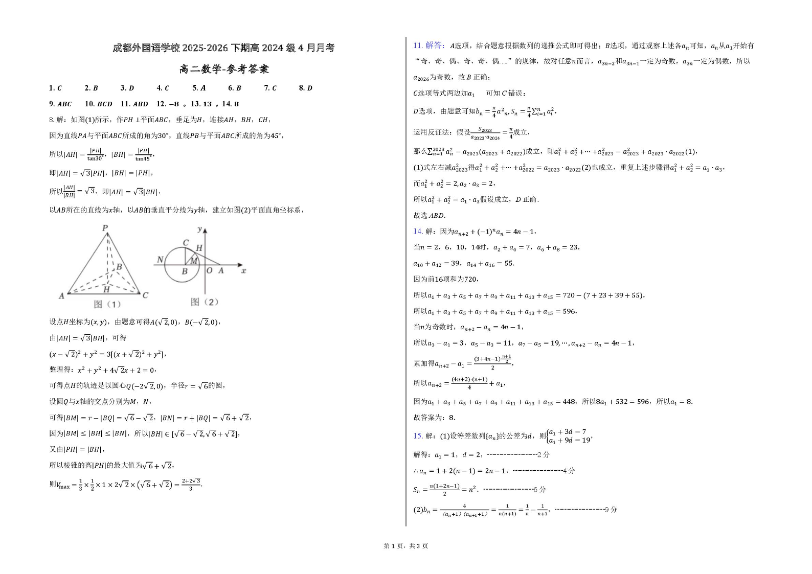 成都外国语学校2025-2026学年高二下学期4月月考 数学答案.pdf