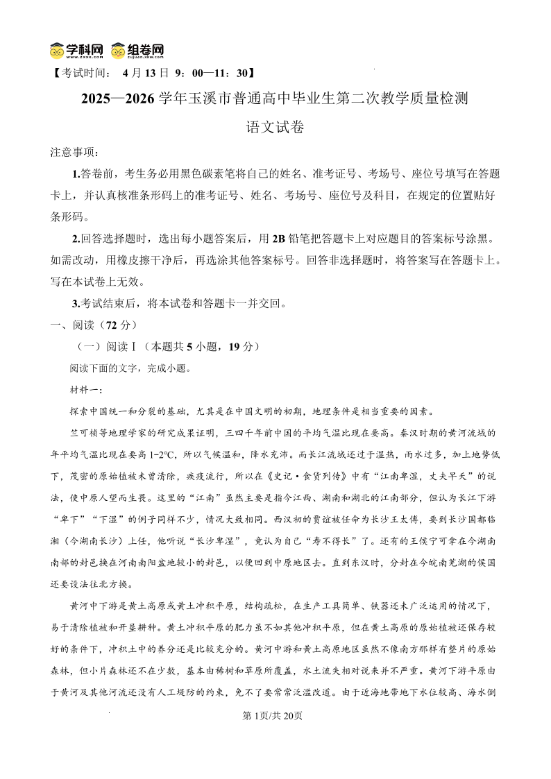 2025一2026学年玉溪市普通高中毕业生第二次教学质量检测 语文答案.pdf