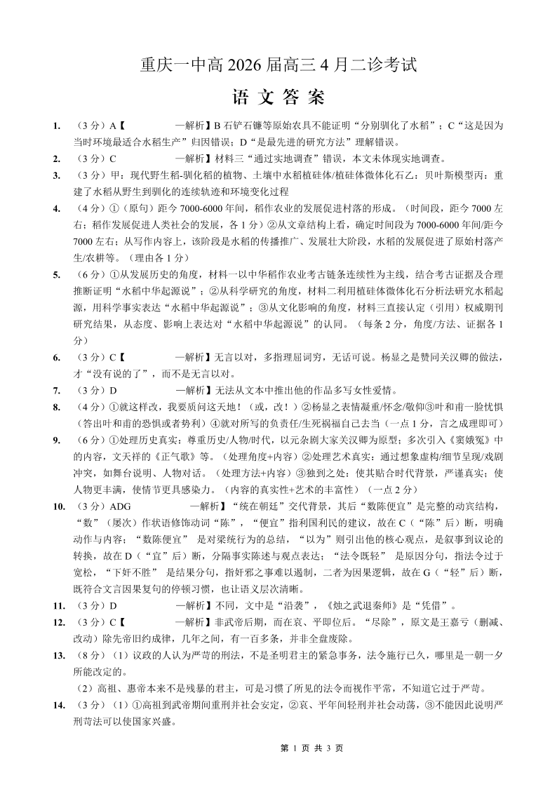 重庆一中高2026届高三下学期4月二诊考试 语文答案.pdf
