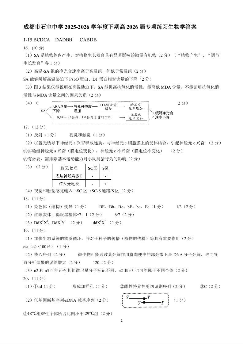 成都石室中学2025-2026学年度上期高2026届专项练习一 生物答案.docx