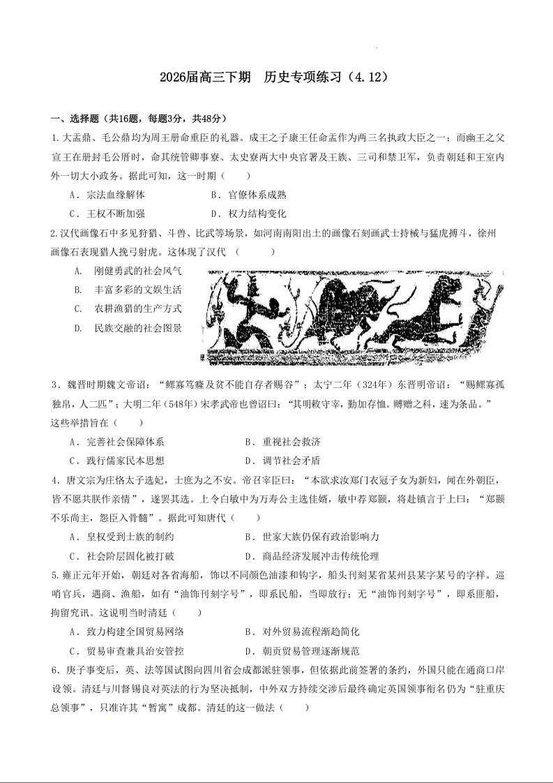 成都石室中学2025-2026学年度上期高2026届专项练习一 历史.docx