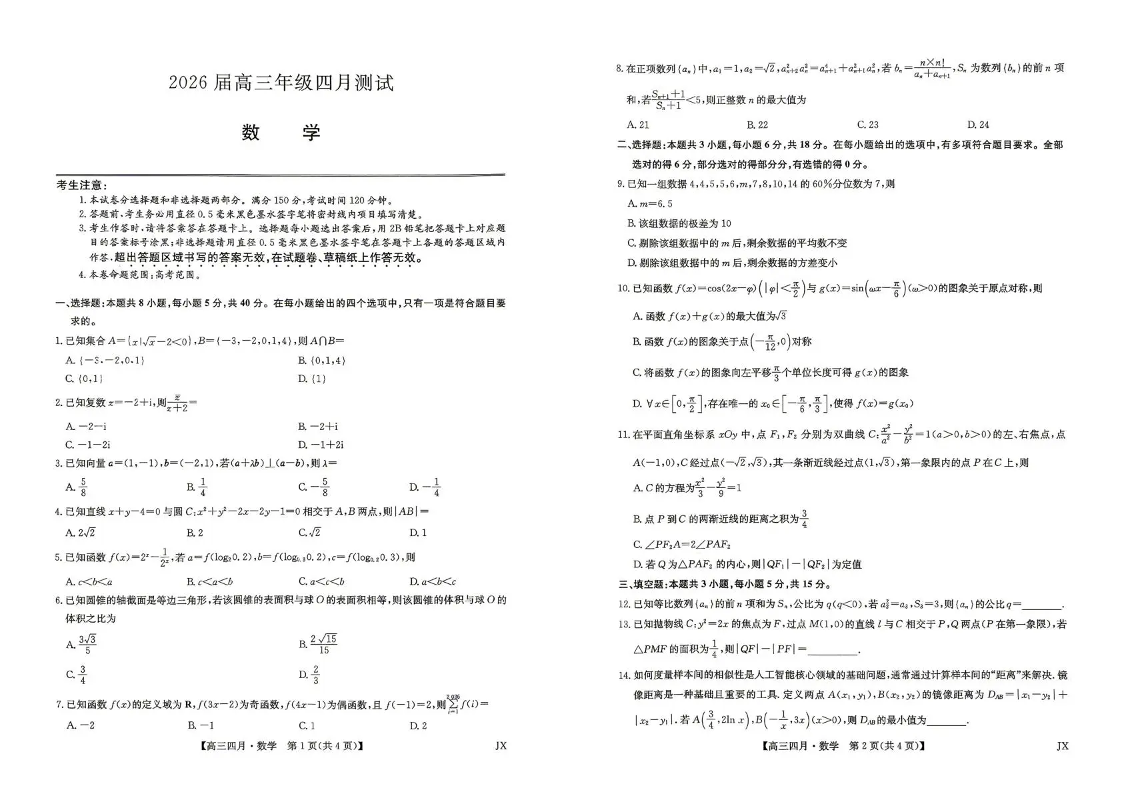 江西省重点中学盟校2026届高三年级4月测试 数学.pdf