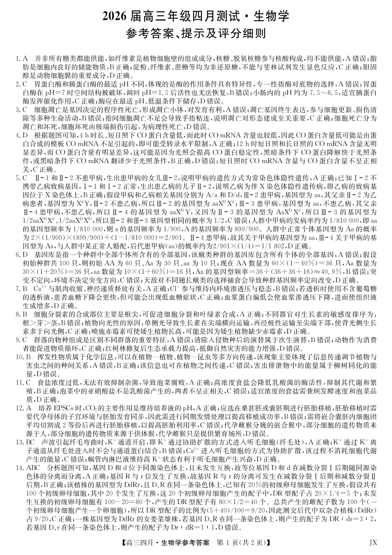 江西省重点中学盟校2026届高三年级4月测试 生物答案.pdf