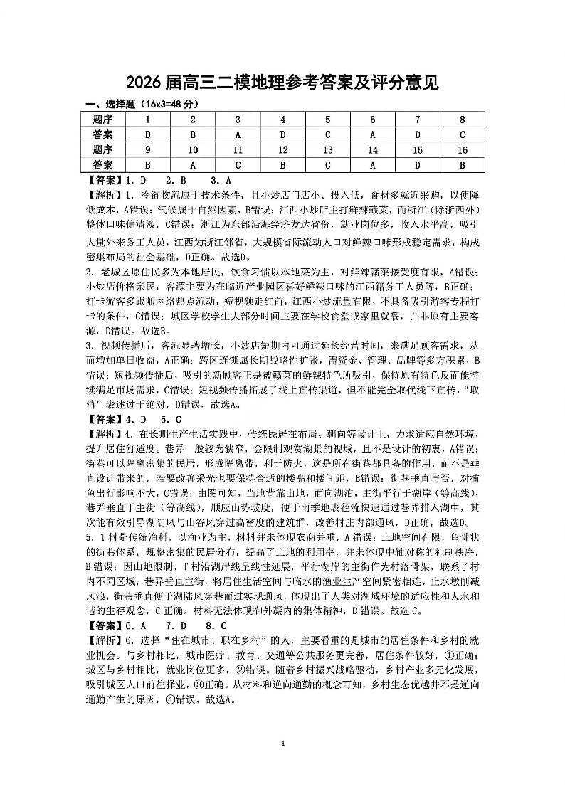 上饶市2026届高三年级第二次高考模拟考试 地理答案.pdf