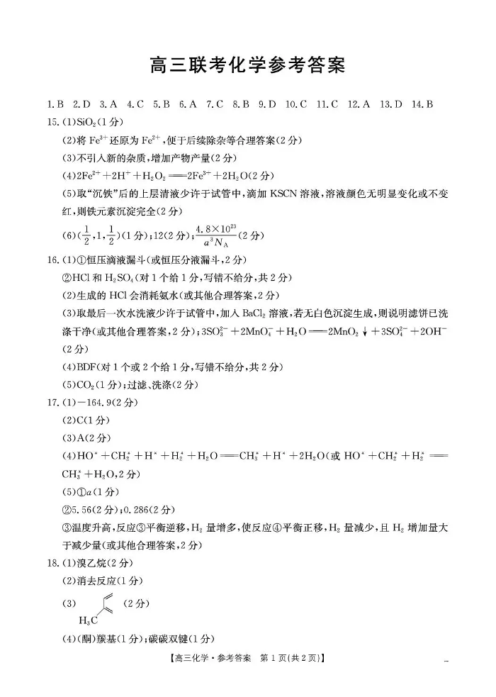 甘肃省2026届高三下学期4月联考 化学答案.pdf