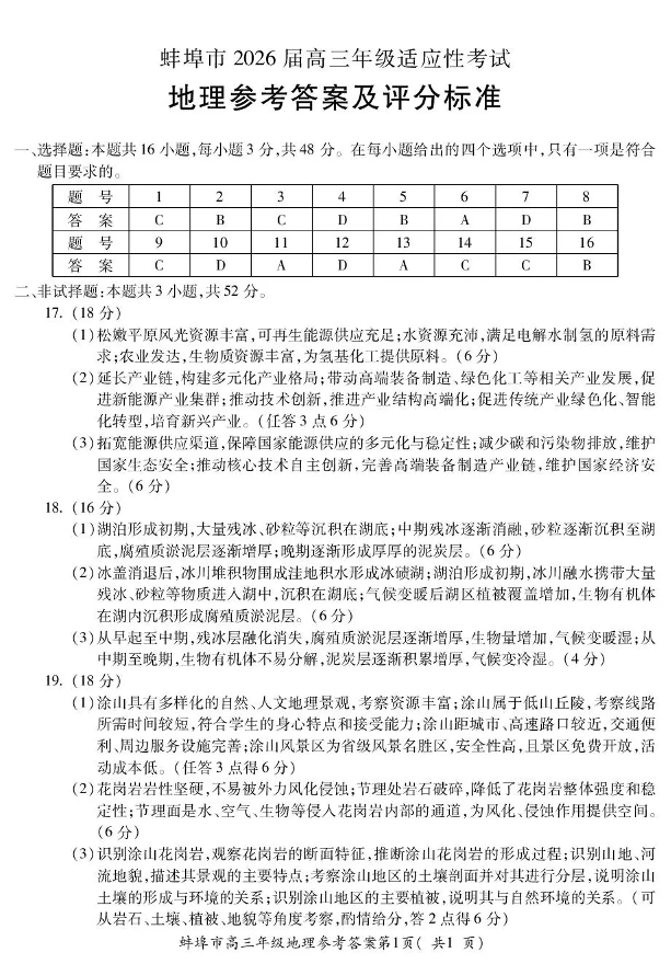 蚌埠市2026届高三年级适应性考试 地理答案.pdf