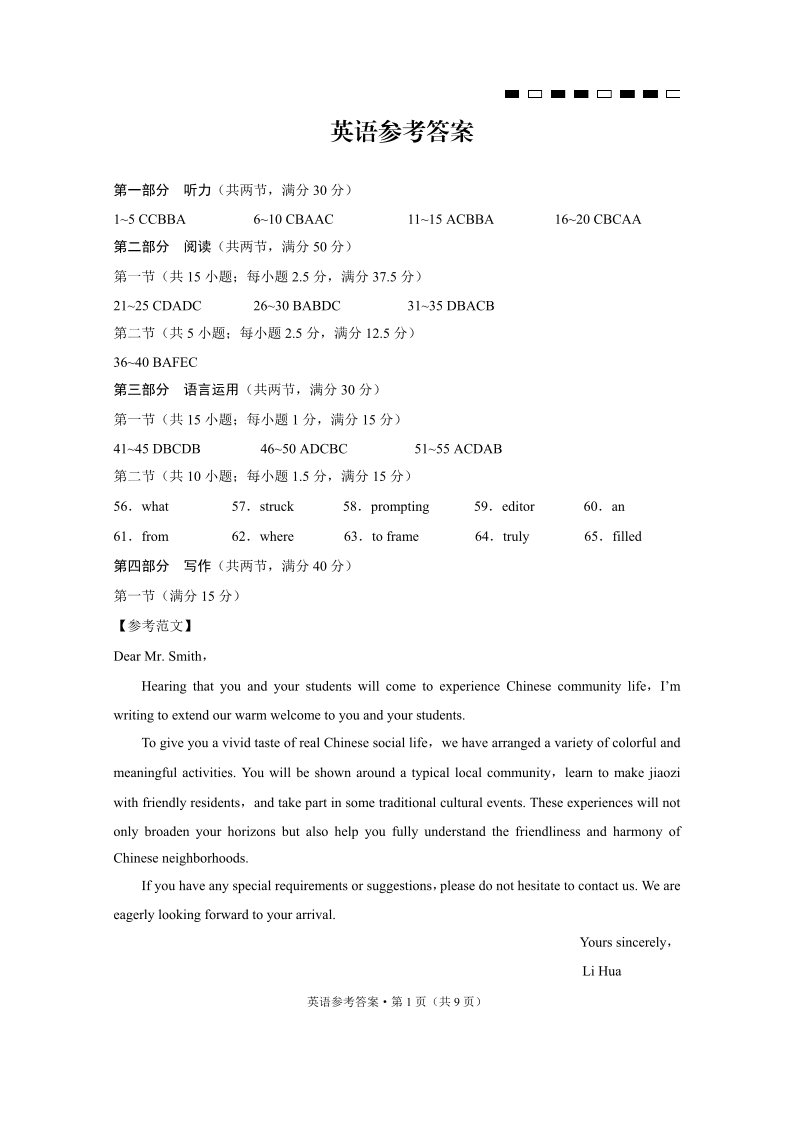 贵州省六校联盟4月高考实用性联考卷(三)英语答案.pdf