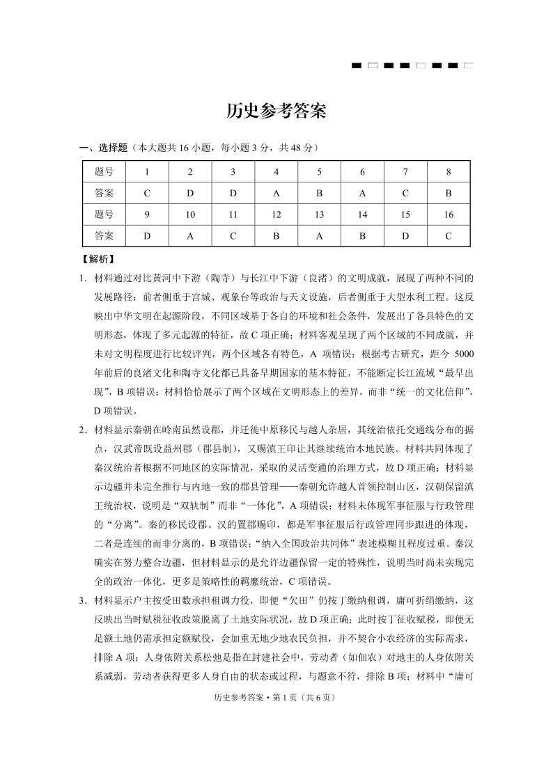 贵州省六校联盟4月高考实用性联考卷(三)历史答案.pdf