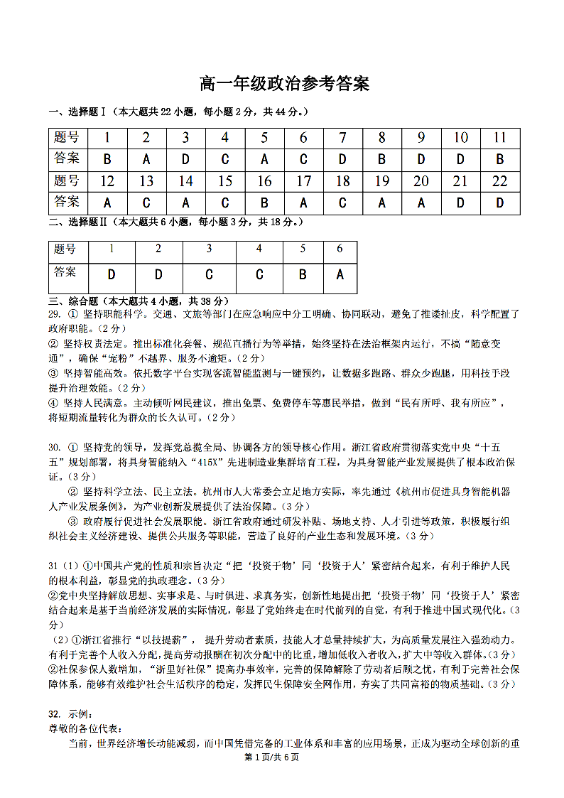 衢州五校联盟2025学年高一第二学期期中联考 政治答案.pdf