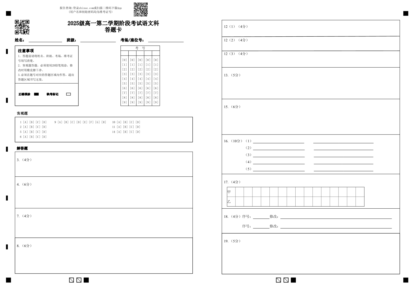 广东省汕头市金山中学2025-2026学年高一下学期阶段性考试 语文答题卡.pdf