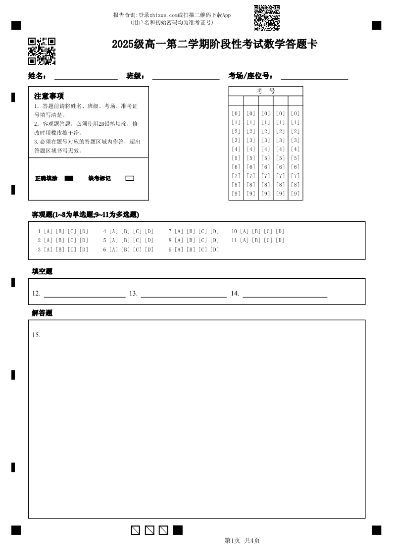广东省汕头市金山中学2025-2026学年高一下学期阶段性考试 数学答题卡.pdf