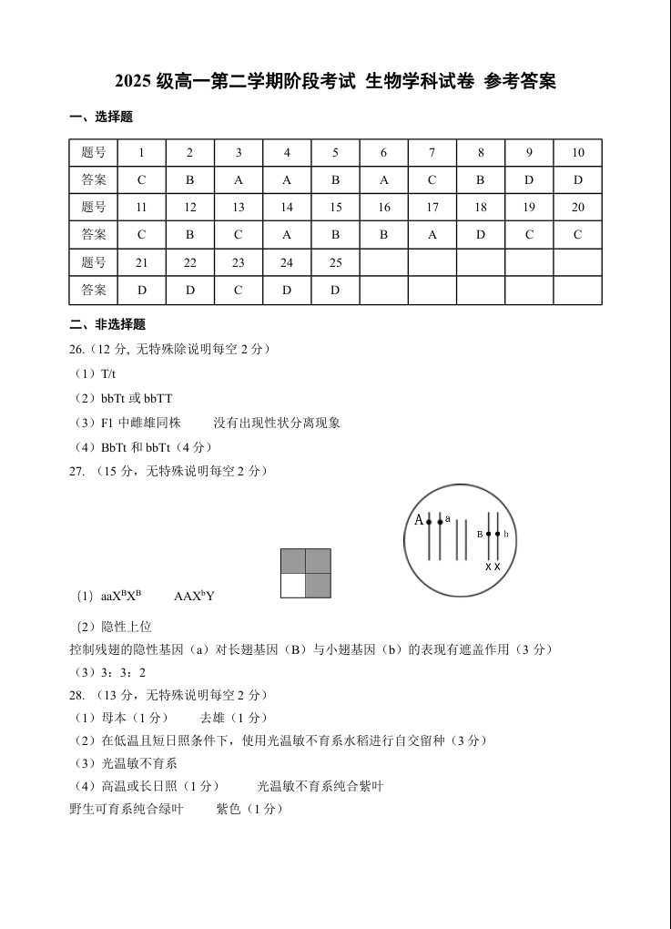 广东省汕头市金山中学2025-2026学年高一下学期阶段性考试 生物答案.docx