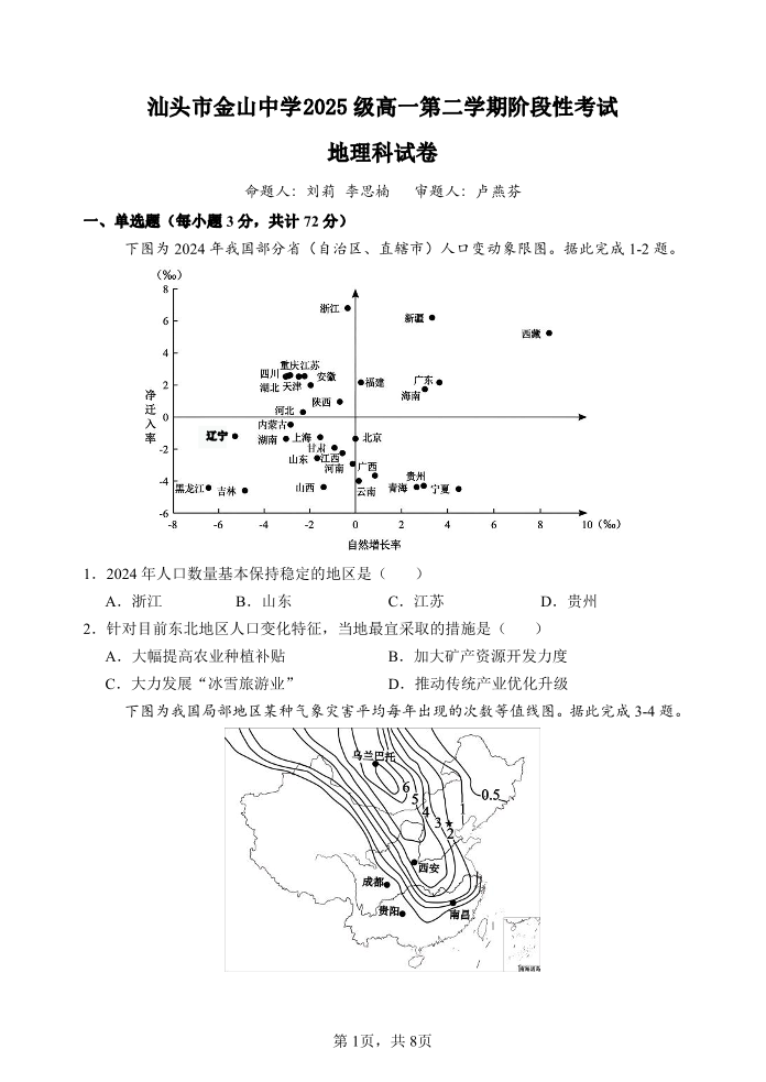 广东省汕头市金山中学2025-2026学年高一下学期阶段性考试 地理.pdf