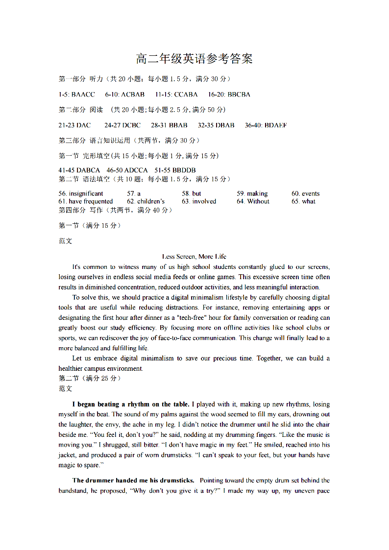 衢州五校联盟2025学年高二第二学期期中联考 英语答案.pdf