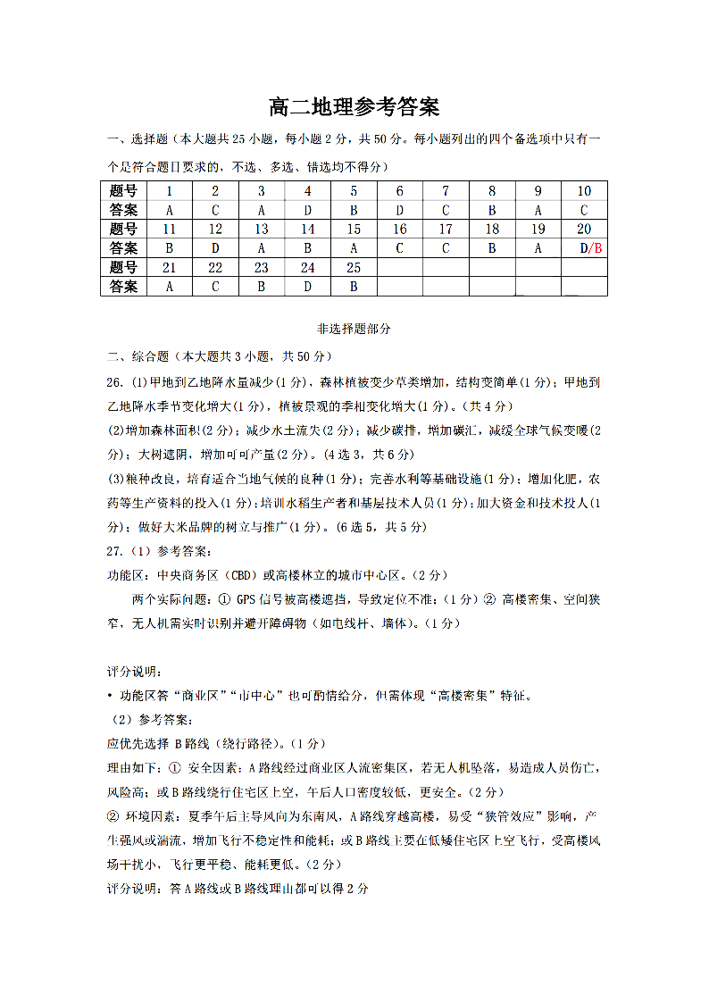 衢州五校联盟2025学年高二第二学期期中联考 地理答案.pdf