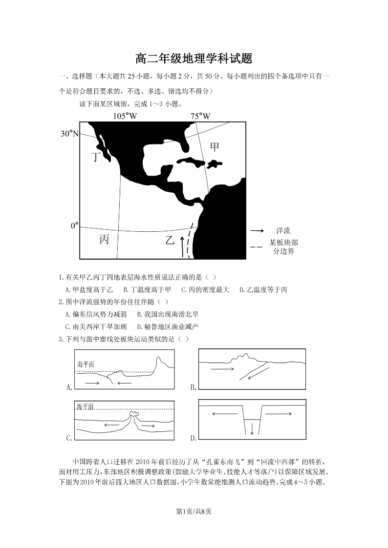 衢州五校联盟2025学年高二第二学期期中联考 地理.pdf