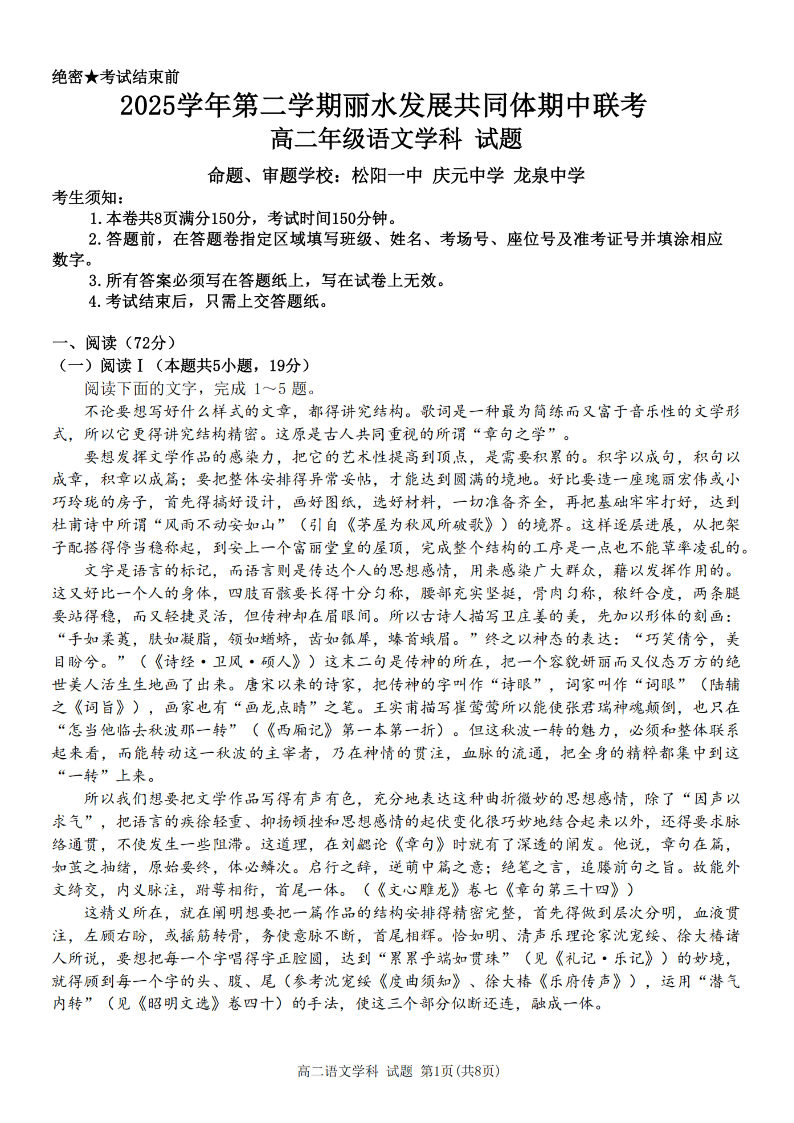 丽水发展共同体2025学年高二第二学期期中联考 语文.pdf
