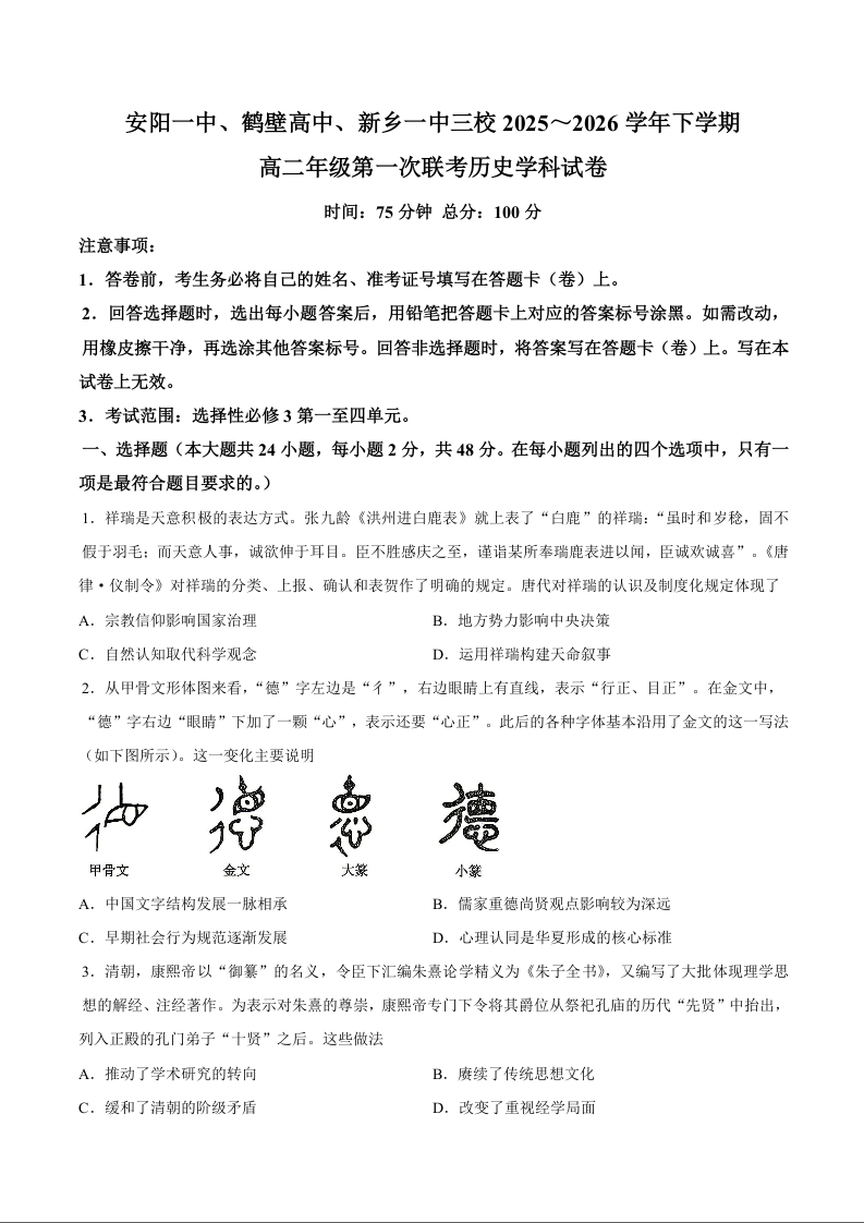 河南省豫北三校2025-2026学年高二下学期第一次联考 历史.docx