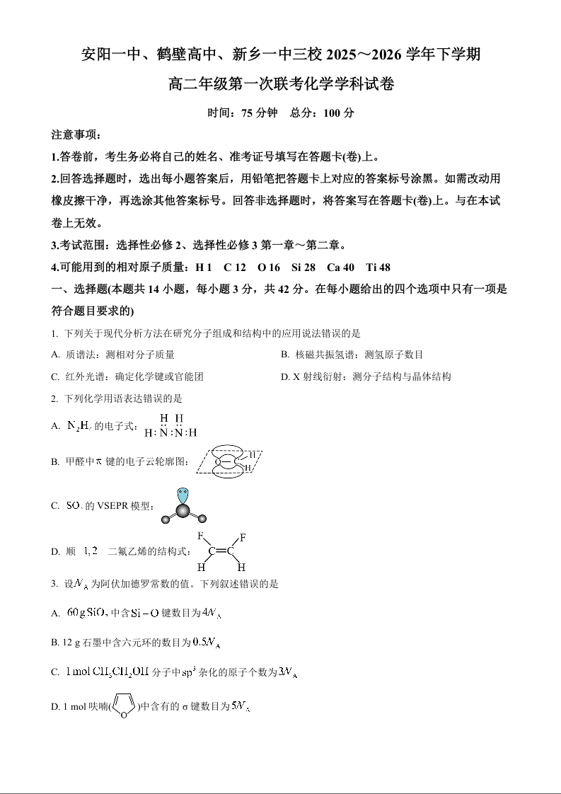 河南省豫北三校2025-2026学年高二下学期第一次联考 化学.docx