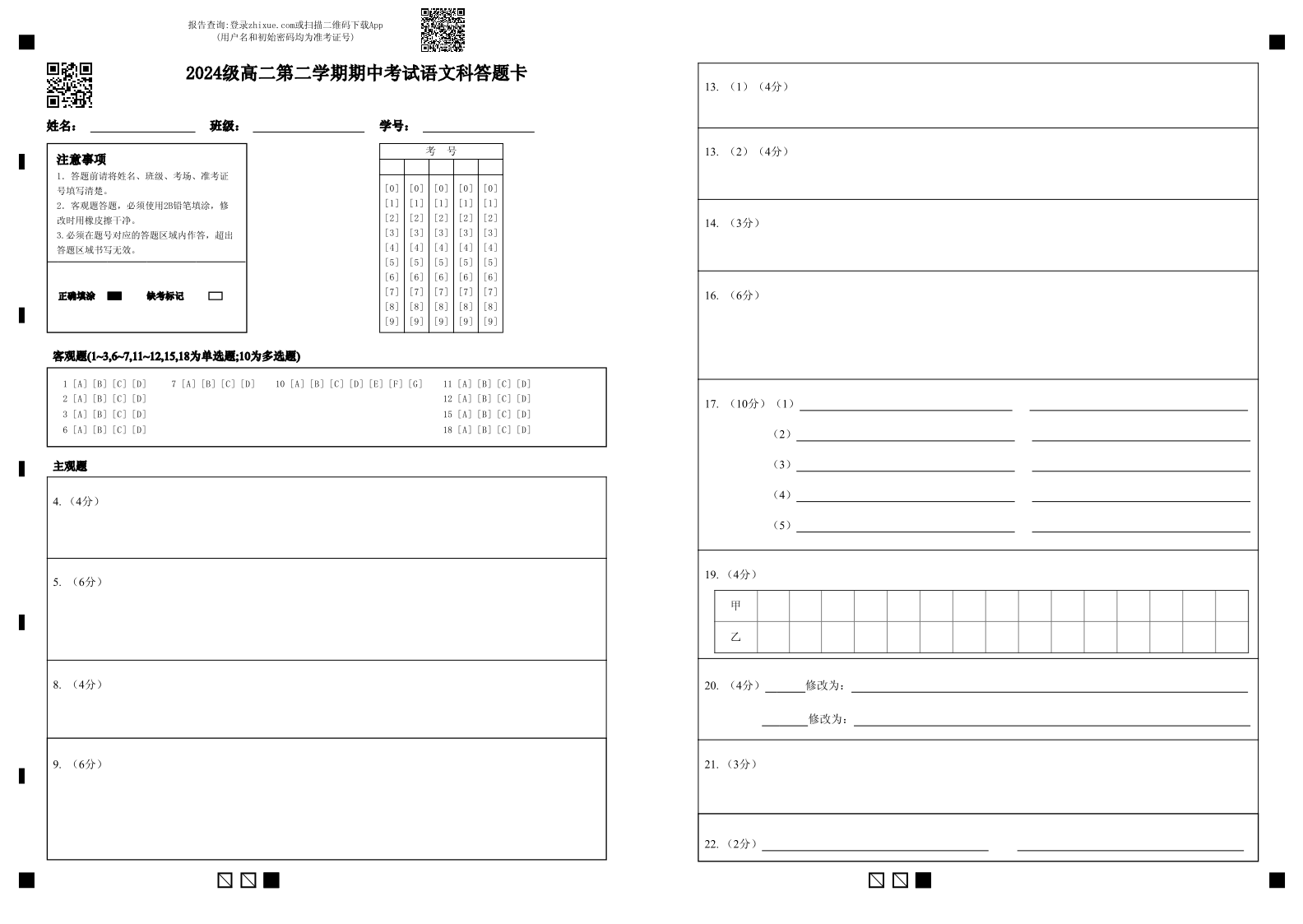 广东省汕头市金山中学2025-2026学年高二下学期期中考试 语文答题卡.pdf