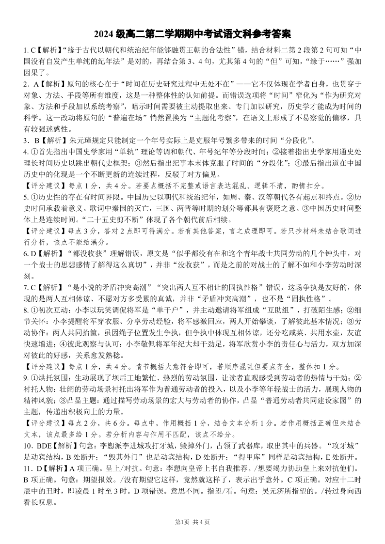 广东省汕头市金山中学2025-2026学年高二下学期期中考试 语文答案.pdf