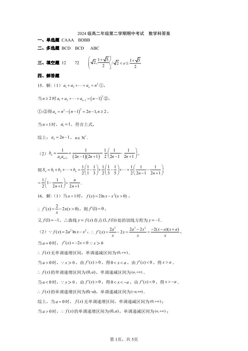 广东省汕头市金山中学2025-2026学年高二下学期期中考试 数学答案.pdf
