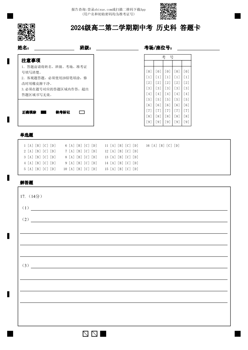 广东省汕头市金山中学2025-2026学年高二下学期期中考试 历史答题卡.pdf