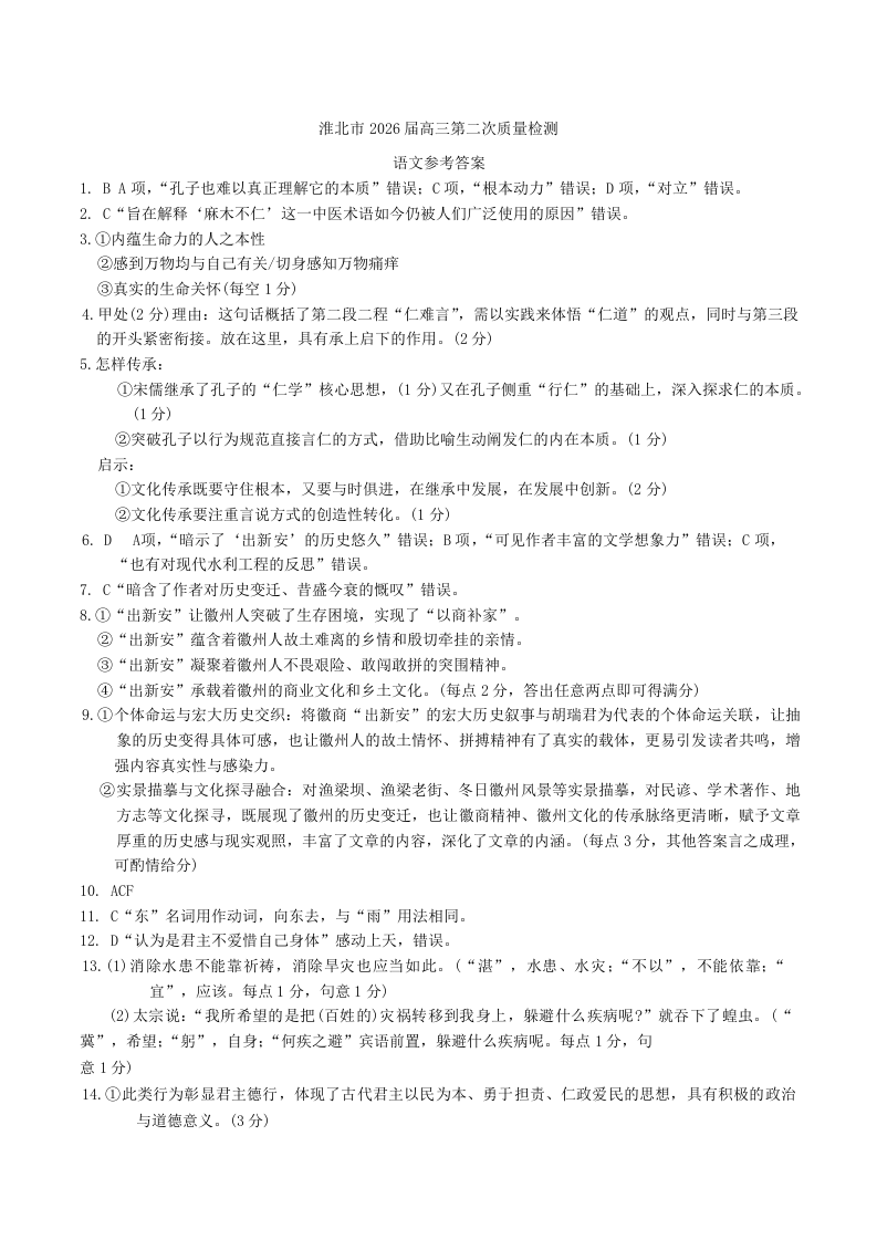 淮北市2026届高三第二次质量检测 语文答案.docx