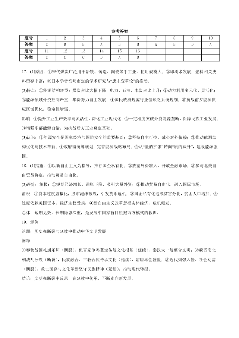 淮北市2026届高三第二次质量检测 历史答案.docx