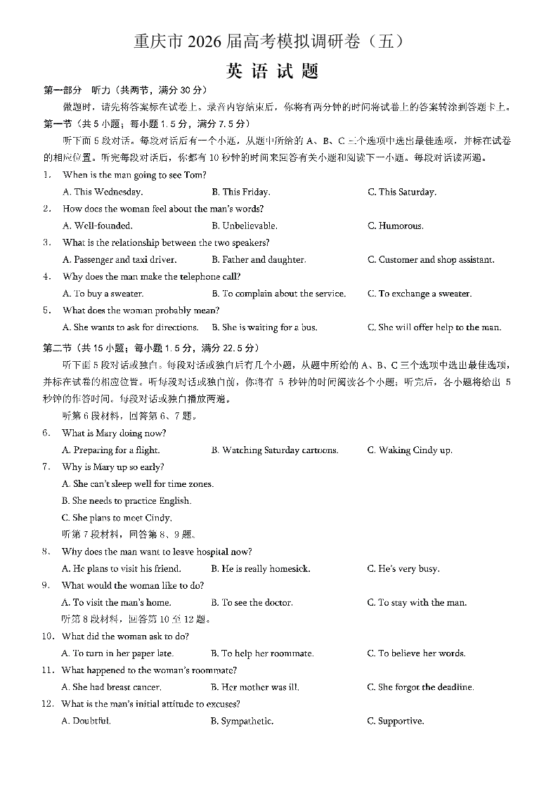 2026年普通高等学校招生全国统一考试康德调研(五)英语试题(含答案).pdf