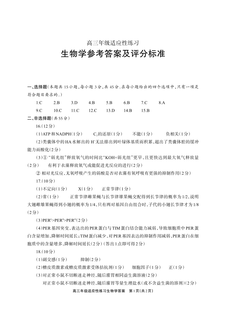 德阳市2026届高三年级适应性练习 生物答案.pdf