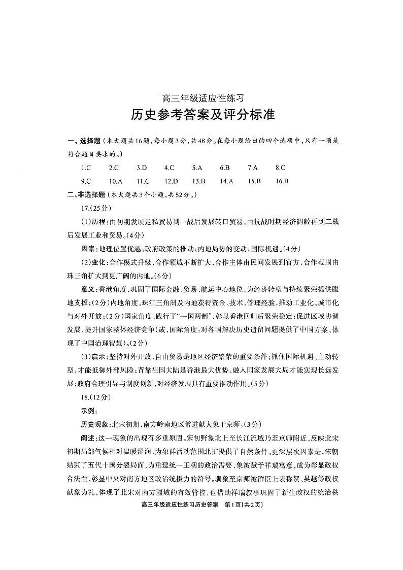 德阳市2026届高三年级适应性练习 历史答案.pdf