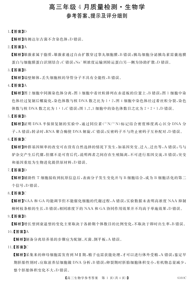天壹名校联盟2026届高三年级4月质量检测 生物答案.pdf