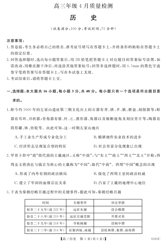 天壹名校联盟2026届高三年级4月质量检测 历史.pdf