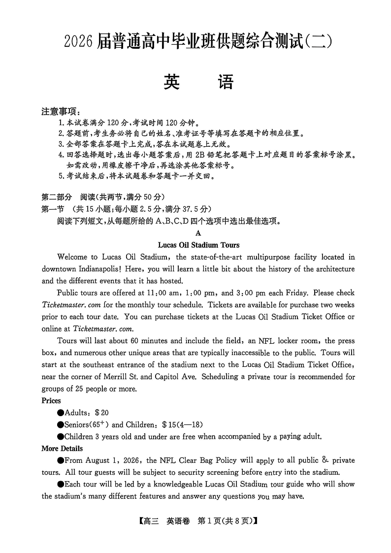 清远市2026届普通高中毕业班供题综合测试(二)英语.pdf